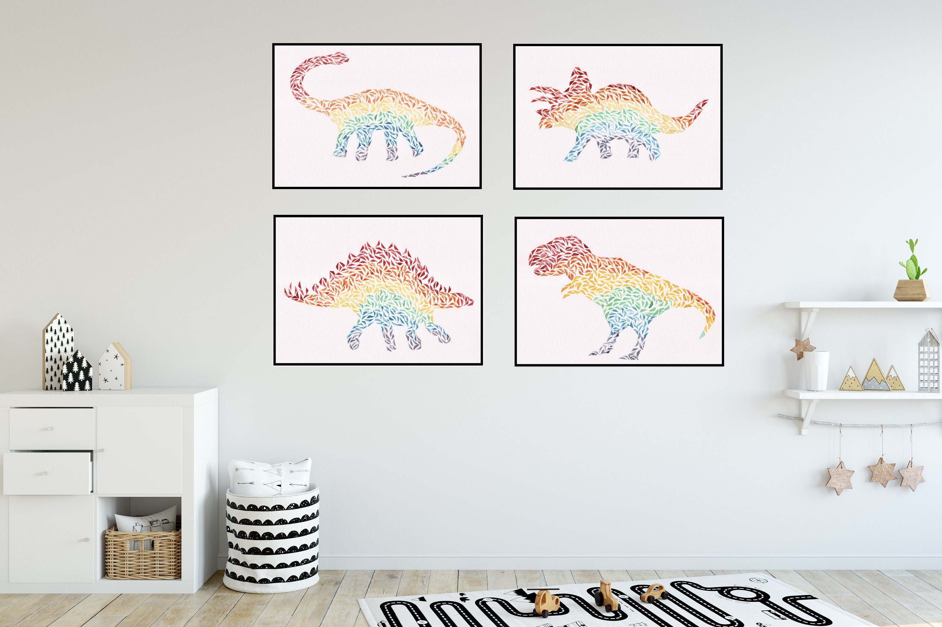 Rainbow Dinosaur Print ++ Rainbow Print, Dinosaur Print, Dinosaur Art, Triceratops, Stegosaurus, Tyrannosaurus Rex, Diplodocus, Nursery